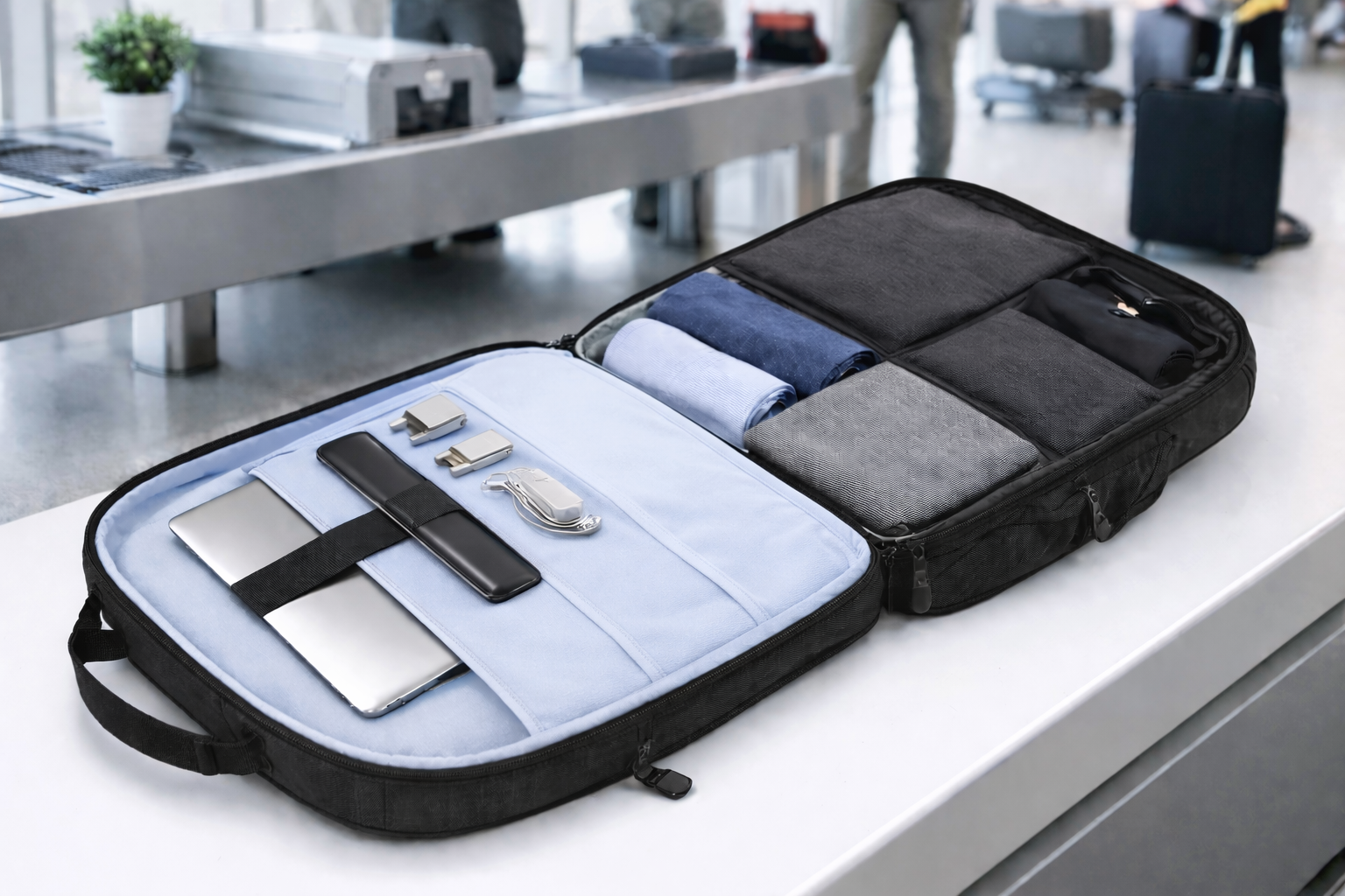 Security is a top priority, with anti-theft features including hidden zippers and RFID-blocking pockets that protect your credit cards and ID from unauthorized access. Multiple compartments and organized storage areas keep everything in place—from power banks and cables to clothes and travel documents.