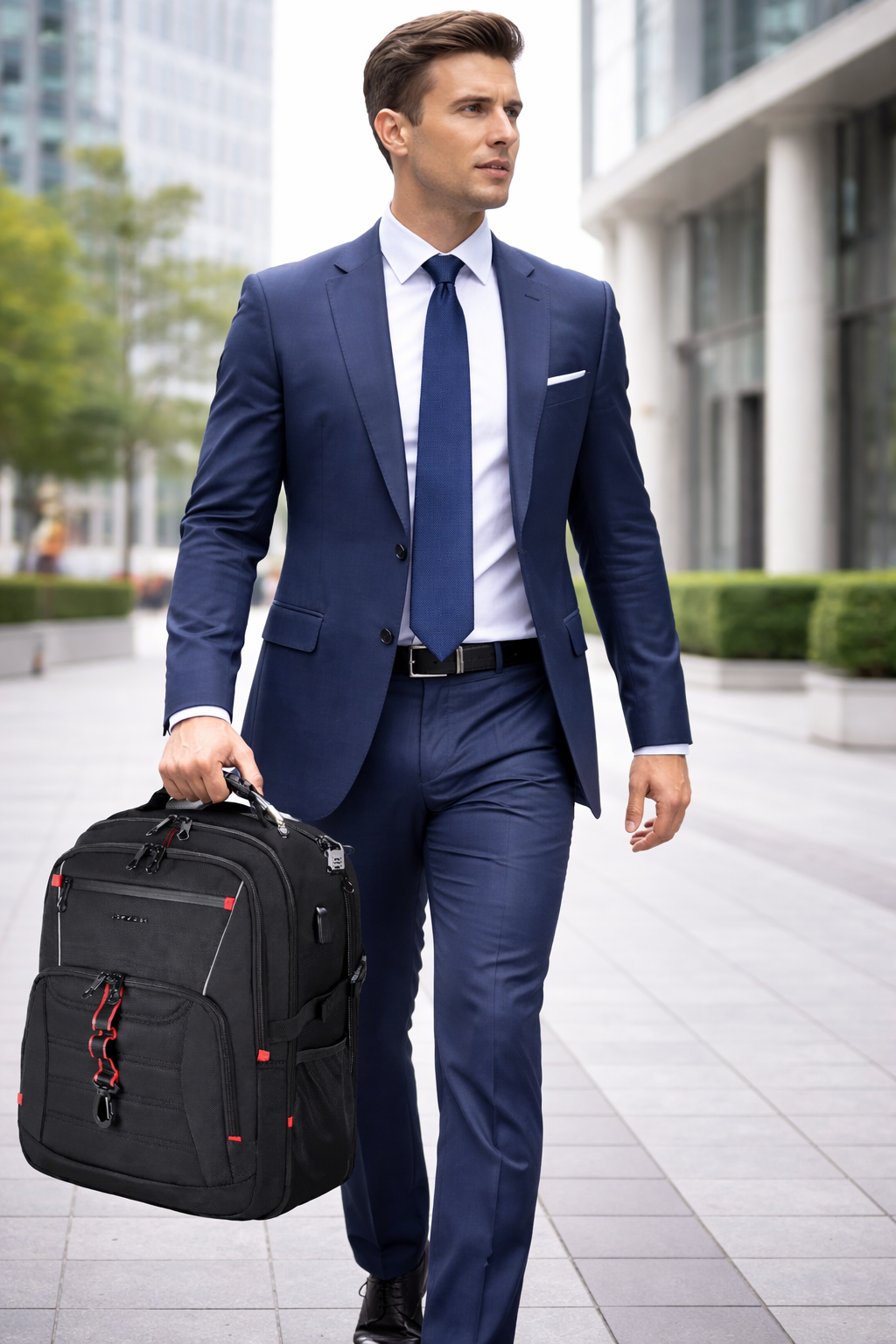 Travel Laptop Backpack 48L TSA-Friendly - Water Resistant & Anti Theft – Zip Lock - Fits 17 inch Laptops - Black